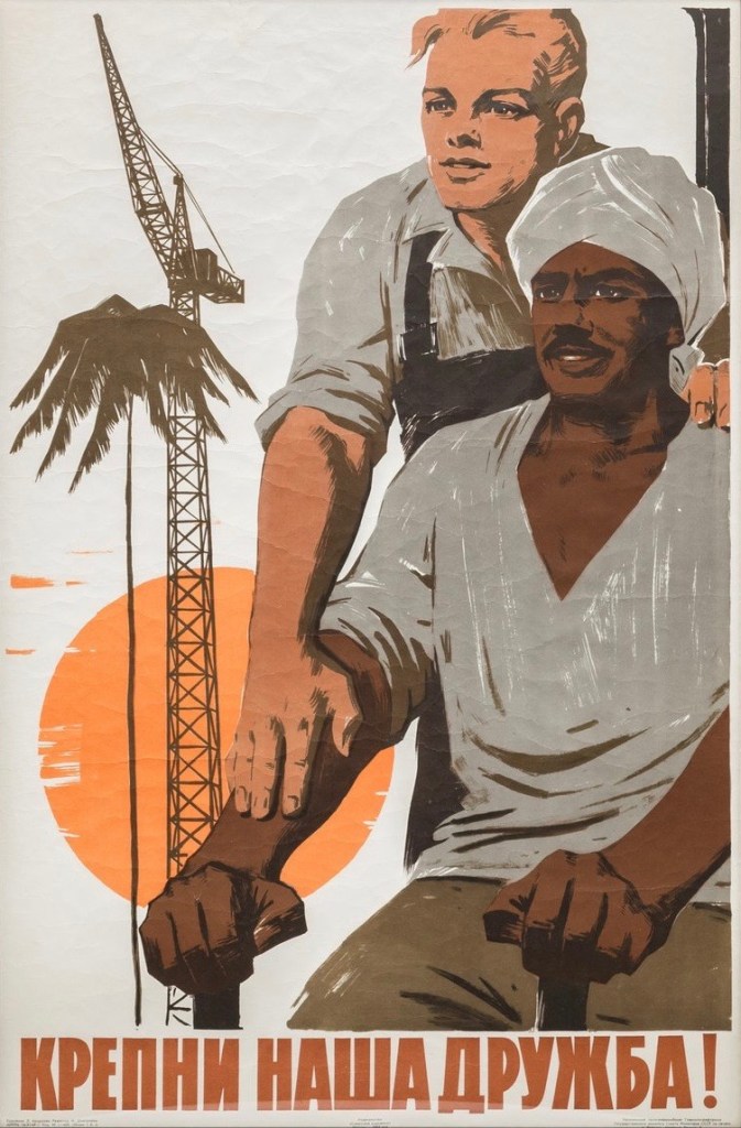 Poster soviet-homoerotic cu egipteni, construcția barajului Aswan
